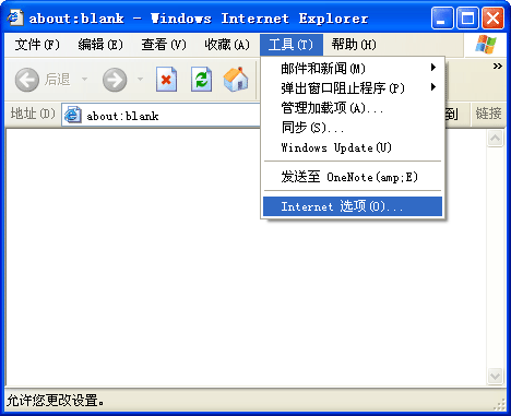 打开IE浏览器,在菜单栏中选择“工具”,点开其中“Internet选项”。