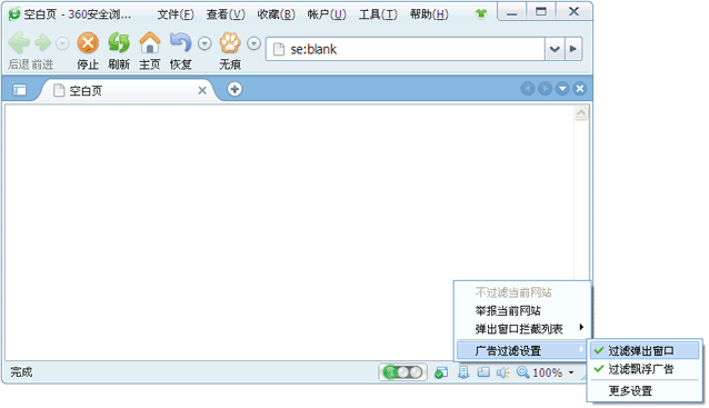 1.在浏览器右下角菜单中,第一个按钮即[已过滤广告]